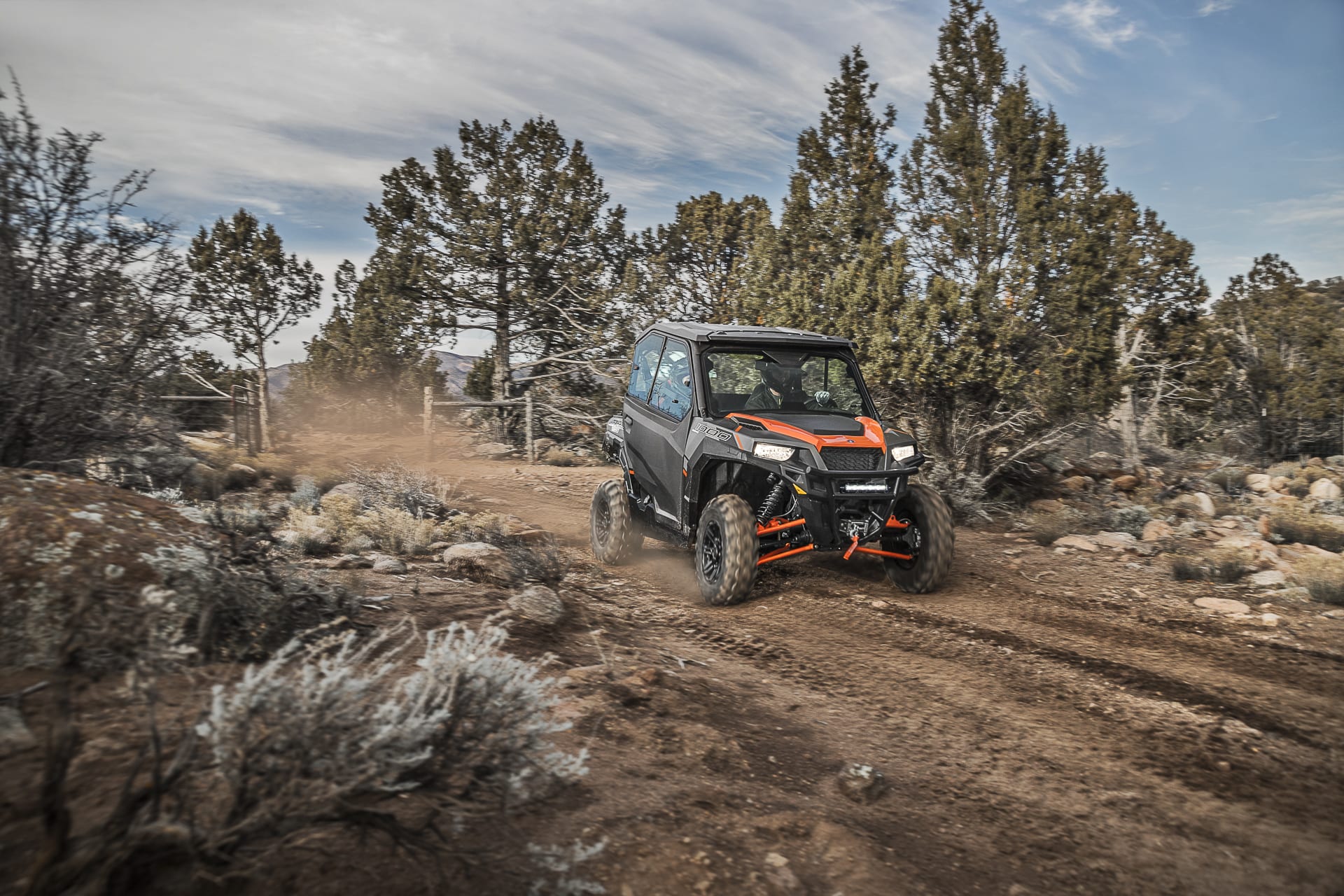 Tous les modèles GENERAL ont maintenant un moteur plus puissant, le plus puissant de sa catégorie, avec un performant moteur ProStar® 1000 de 100 chevaux, une capacité de charge utile de 1100 lb. (500 kg.), un débattement de suspension de 12,25 po (31,11 cm), 12 po (30,48 cm) de garde au sol et 600 lb. (272 kg) de capacité de la boîte de chargement. Les caractéristiques de série incluent: mode gazon VersaTrac® Turf Mode, servodirection électronique (EPS), demi-portes solides et un système de frein-moteur (EBS).