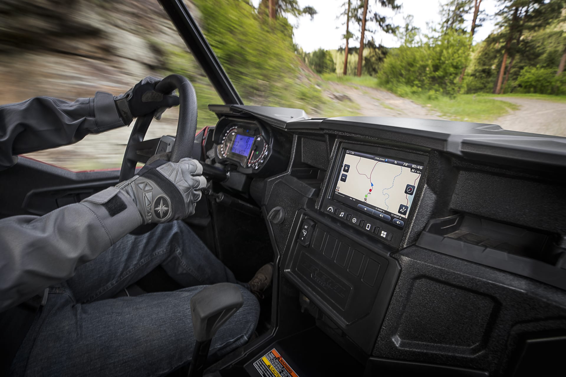 GENERAL 1000 EPS RIDE COMMAND®: présente le système RIDE COMMAND avec écran tactile de 7 po utilisable même avec des gants, des caméras avant et arrière embarquées, un GPS, une barre audio MTX Premium à 8 haut-parleurs, un pare-chocs avant sport à profil abaissé, un treuil Polaris HD de 4500 lb, un toit sport Lock & Ride et des amortisseurs FOX® 2.0 podium X QS3. Véritable révolution de la conduite, le système RIDE COMMAND permet aux pilotes d’enregistrer leur propre itinéraire, de créer un groupe et de voir l’emplacement des autres conducteurs du groupe, il permet aussi de contrôler la caméra GoPro. Nouveauté pour 2018, la conduite en groupe a été améliorée grâce à la fonctionnalité de suivi, ce qui permet aux pilotes de visualiser l’emplacement, la distance et les itinéraires des autres membres du groupe en temps réel. Disponible en rouge mat Sunset.