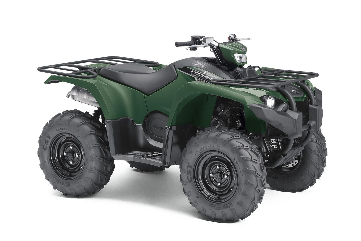Le 2018 Yamaha Kodiak 450 à DAE revêt des robes de diverses couleurs : gris bleuté, beige avec un motif camouflage, bleu acier et vert; le Kodiak 450 sans DAE, lui, est livré avec une robe soit verte, soit rouge ou bleu acier. PDSF à partir de 7 799 $.