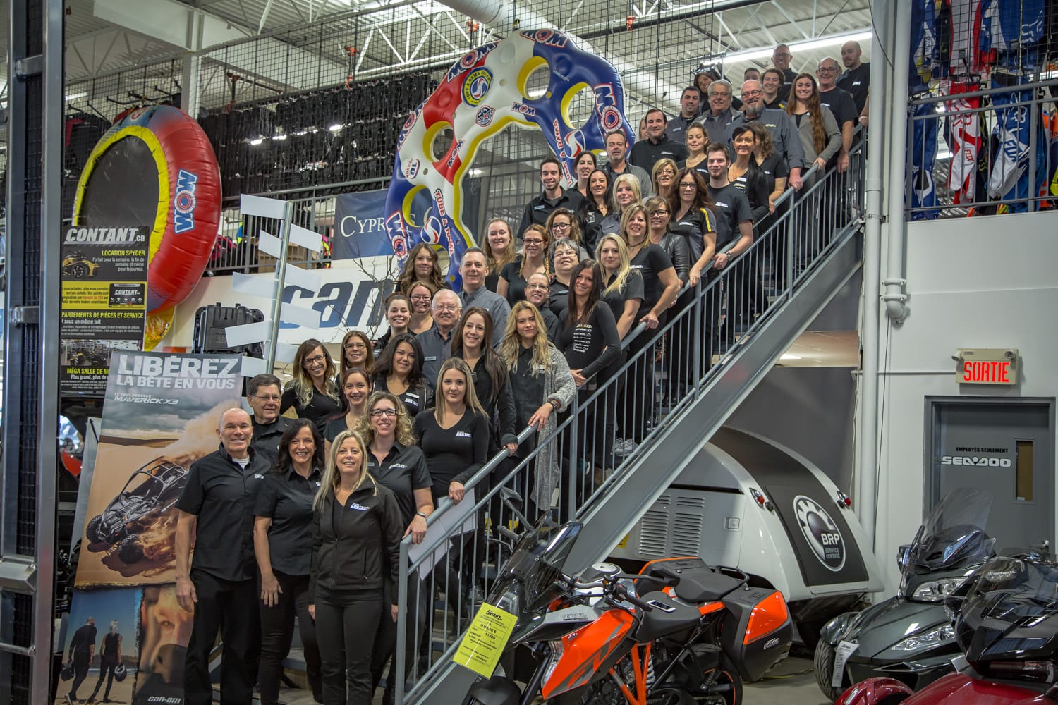 Rien n’aurait pu se faire sans la confiance de Bombardier, devenue BRP, reconnait Chantal Contant. Elle va continuer à gérer ce groupe qui a quintuplé depuis la relève. Vous pourrez la voir derrière le comptoir pendant les Portes Ouvertes, un moment important de l’année prémotoneige, travaillant comme n’importe quel employé, pour être plus proche de ses clients.