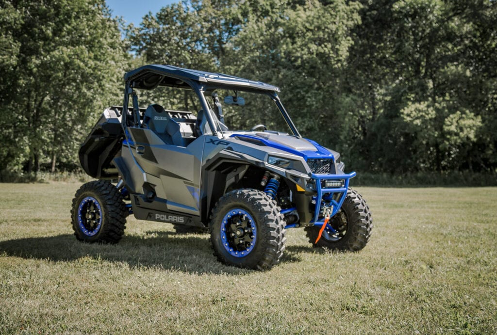 Édition spéciale s.v.p !! D’une peinture bleue métallisée, Polaris va offrir aux amateurs une édition spéciale de son véhicule biome travail/sentier. Mise à part la peinture spéciale, on retrouve de série une barre DEL à l’avant et un système de son hyper performant installé dans le toit du véhicule! Bien que les données de puissance en watts n’ayant pas été divulguées au moment du lancement, on peut vous assurer que vous pourrez assumer le rôle de DJ, lors du feu de camp…