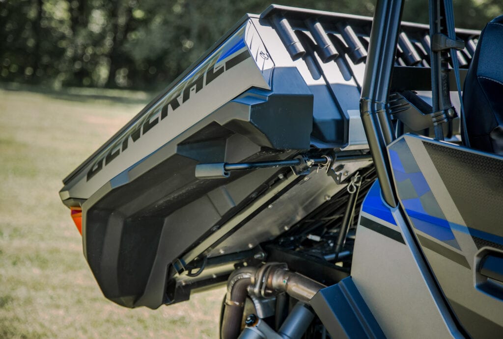 Pour continuer dans la même lignée, une deuxième édition spéciale est disponible, la Général XP 1000 Pursuit Edition. Une grande capacité de cargaison arrière, en option, le support d’arme à feu, une barre DEL avant, un treuil de 4500 livres, et pour terminer, un kit graphique de style camouflage qui charmera les amateurs de chasse et pêche