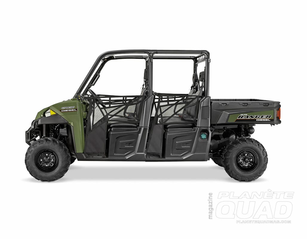 Le RANGER CREW 900 sera disponible en vert Sauge et rouge Solaire tandis que la version EPS sera offerte dans les couleurs rouge Soleil Levant, gris Super Acier, blanc Lightning et Polaris Pursuit Camo. Le RANGER CREW 570 pleine grandeur sera quant à lui offert en vert Sauge tandis que le modèle EPS sera disponible en Polaris Pursuit Camo. Le RANGER CREW Diesel viendra en vert Sauge.