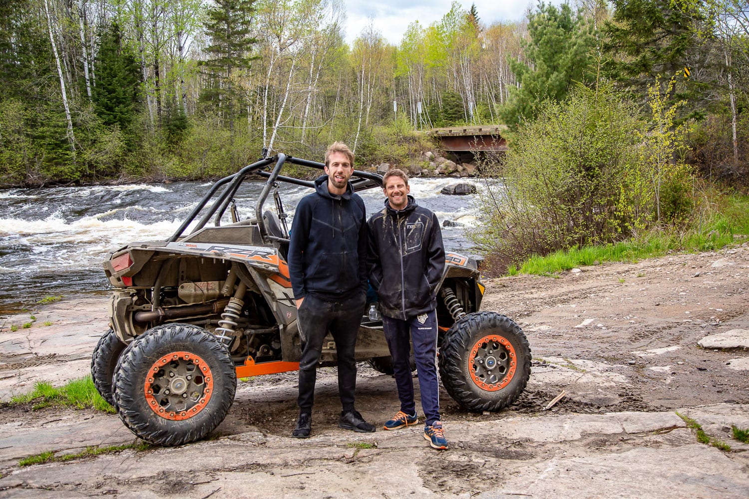 Après une bonne nuit de sommeil et un bon déjeuner à l’auberge, nous étions prêts à attaquer les sentiers à bord de nos montures. Nos guides, Jean-Raymond Proulx et Mario Morin ne se sont pas fait prier pour nous accompagner et pour s’assurer de l’aspect sécurité de la randonnée. Pour l’occasion, le concessionnaire Mathias Marine Sports avait pris soin de préparer un véhicule tout indiqué pour notre pilote professionnel. Un Polaris RZR 1000 turbo développant un impressionnant 168 hp bien senti fut mis à sa disposition pour son introduction à cette activité bien présente chez nous. De son propre aveu, c’était sa première expérience à bord de ce type de véhicule. De plus, il ne possède aucune expérience dans les courses de type rallye. Par conséquent, nous nous attendions à une période d’adaptation de sa part. Cette phase fut cependant de très courte durée. Sa très grande expérience derrière un volant lui a permis de se familiariser très rapidement aux aspects entourant la conduite d’un autoquad.