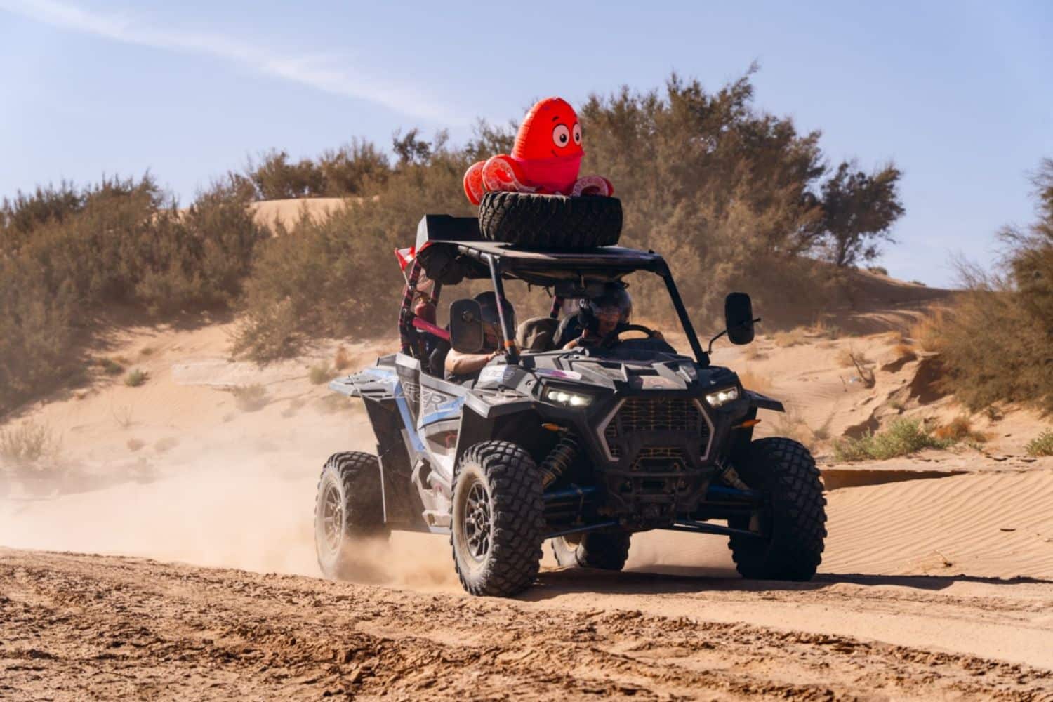 C’est donc avec le cœur rempli d’amour à donner et du courage plein les poches que nous sommes arrivées à Merzouga le 17 octobre 2025, au campement principal qui allait faire office de village pour les sept prochains jours ! Considérant que notre side by side (ou SSV, comme disaient les Françaises) serait notre allié pour cette aventure, nous lui avons donné un nom et une personnalité !